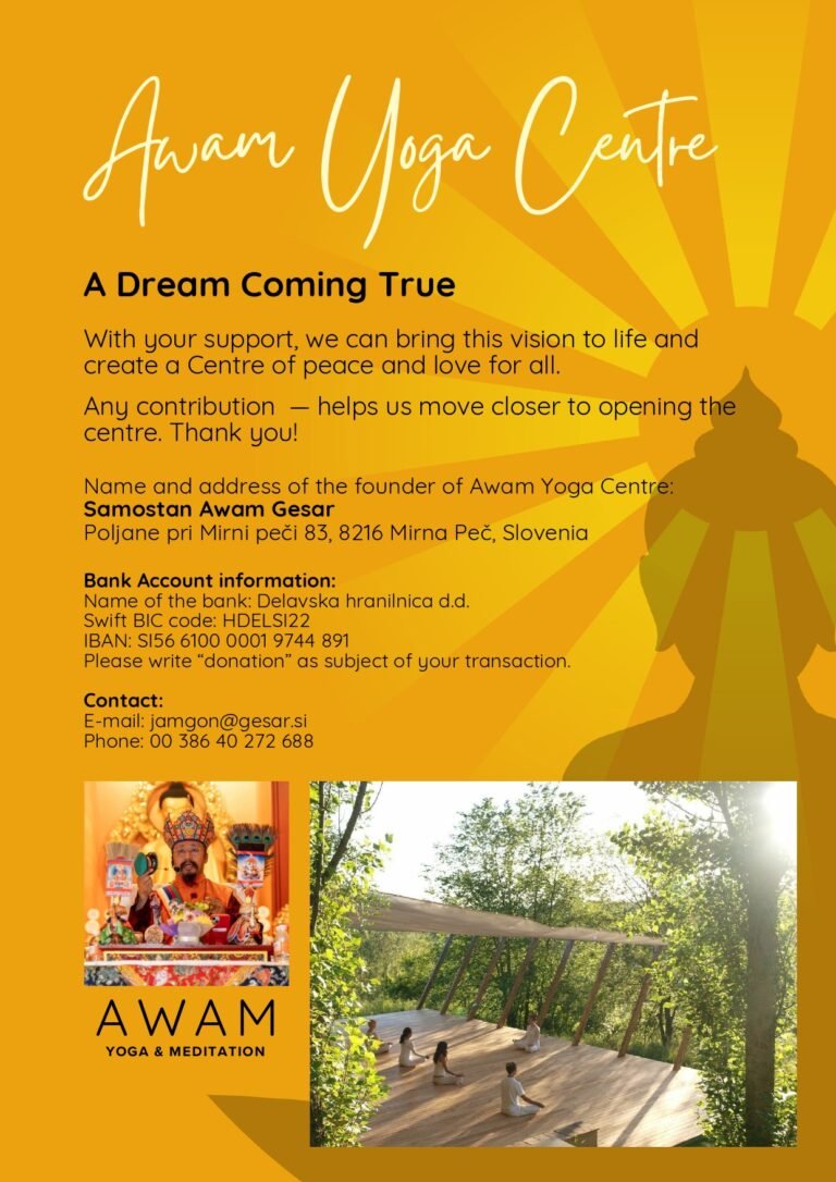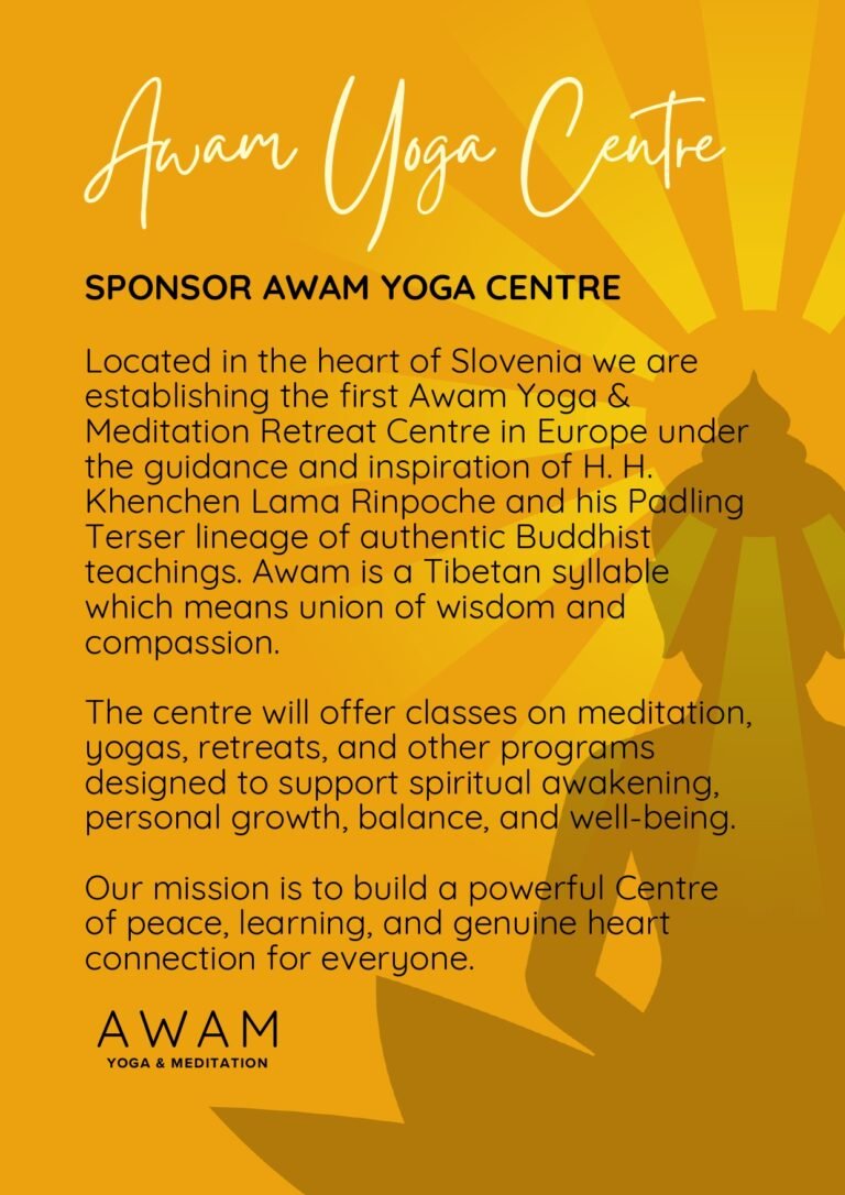 Located in the heart of Slovenia we are establishing the first Awam Yoga & Meditation Retreat Centre in Europe under the guidance and inspiration of H. H. Khenchen Lama Rinpoche and his Padling Terser lineage of authentic Buddhist teachings. Awam is a Tibetan syllable which means union of wisdom and compassion.